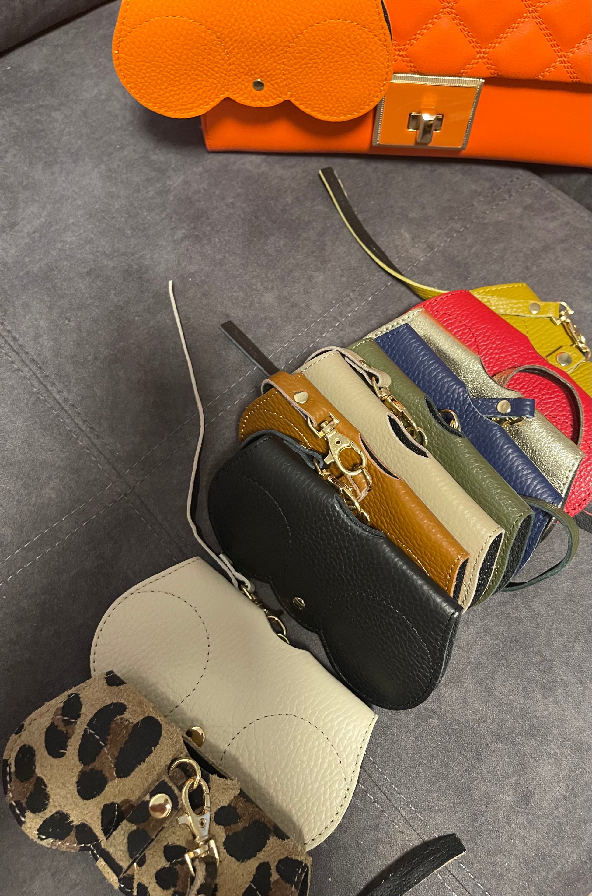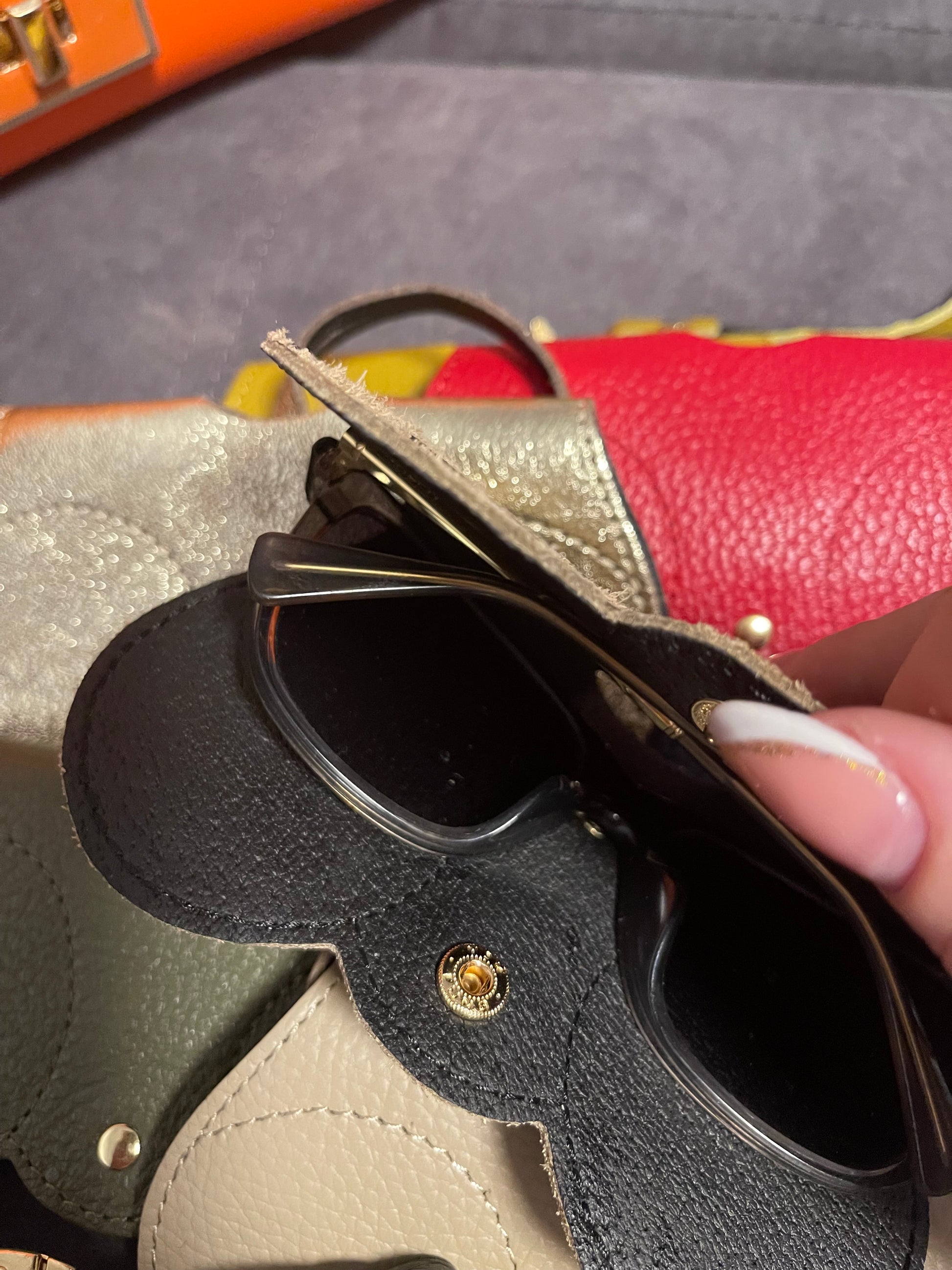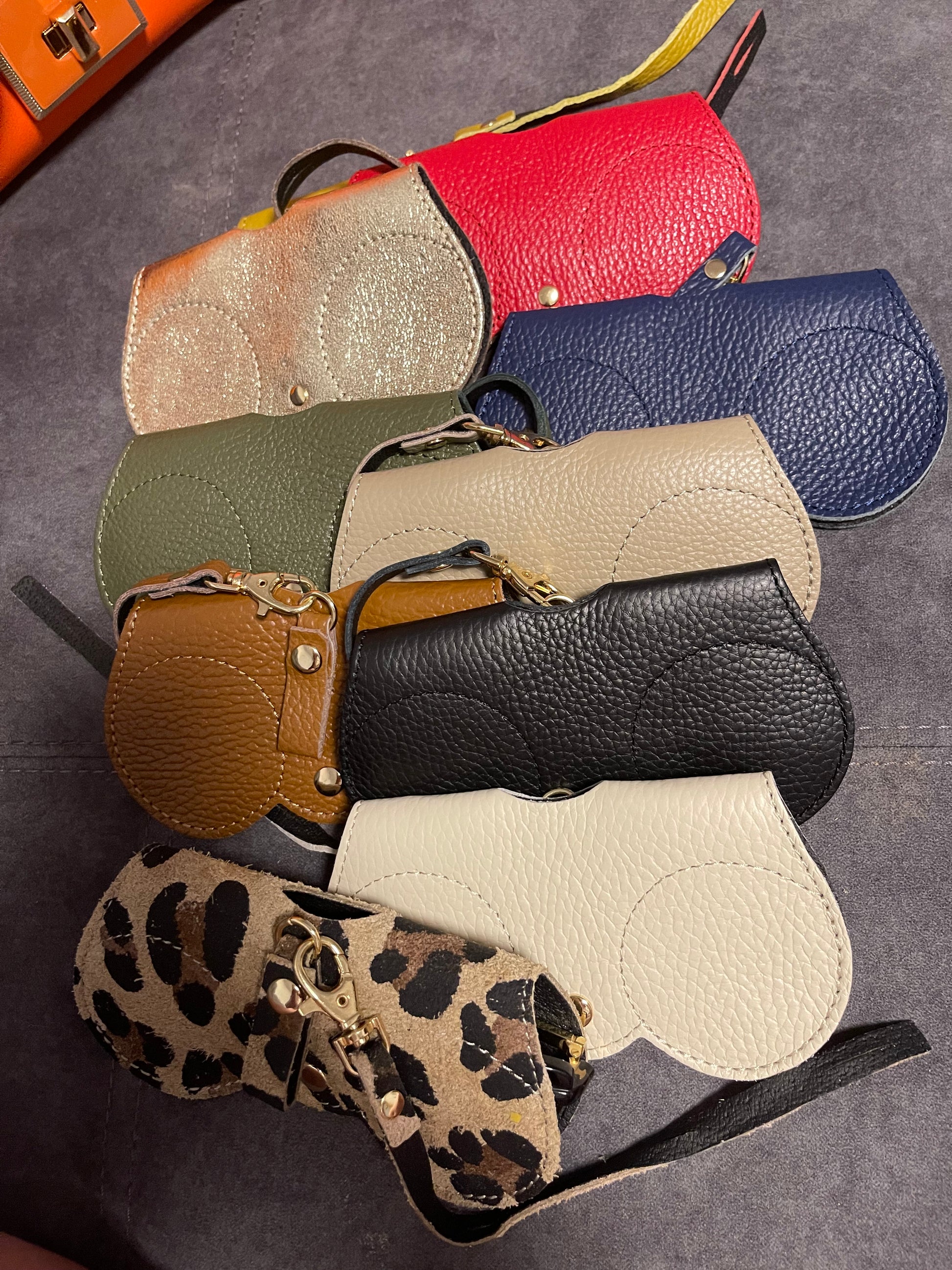 Leather glasses holder can be used normally or attached to your handbag or jeans Various colours