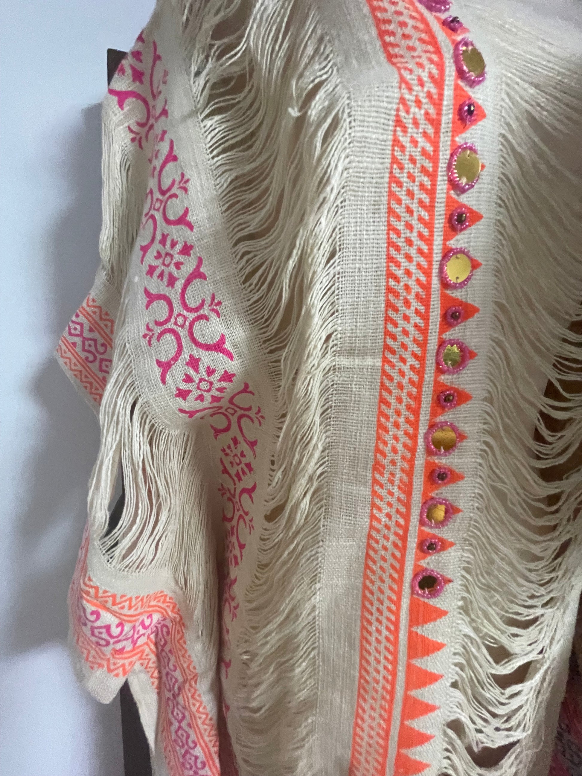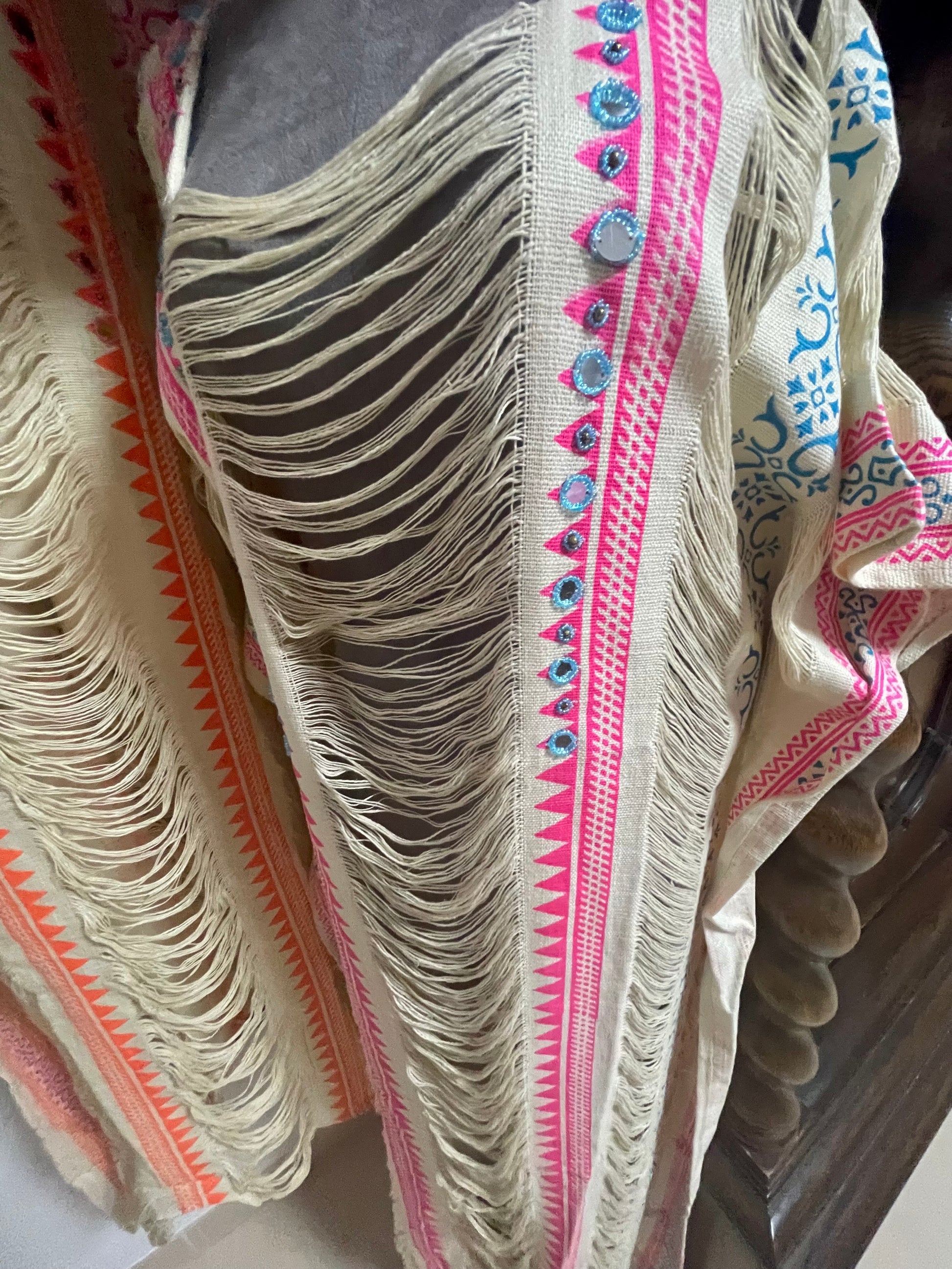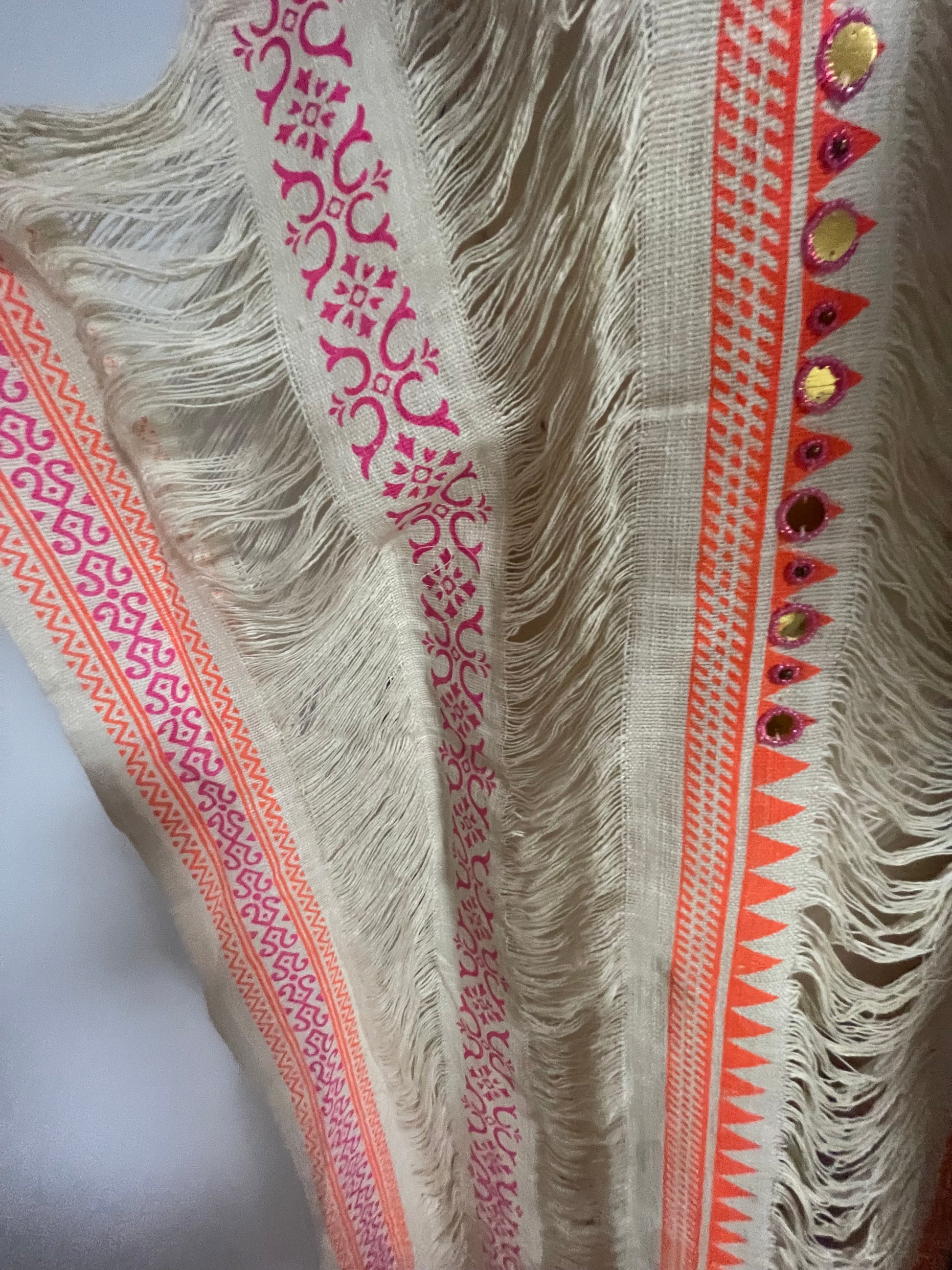 Gorgeous beige base with either pink and turquoise or orange and pink, mirror and bead detail fits 12-18