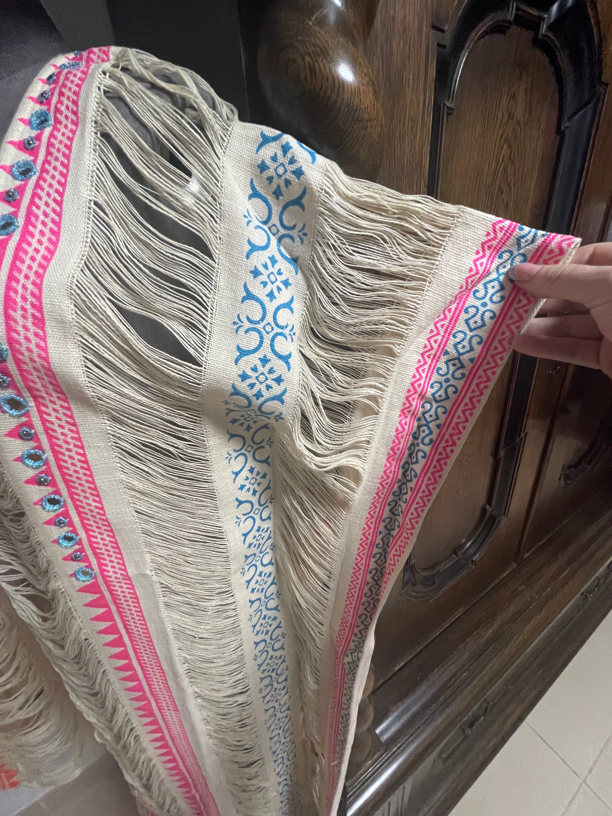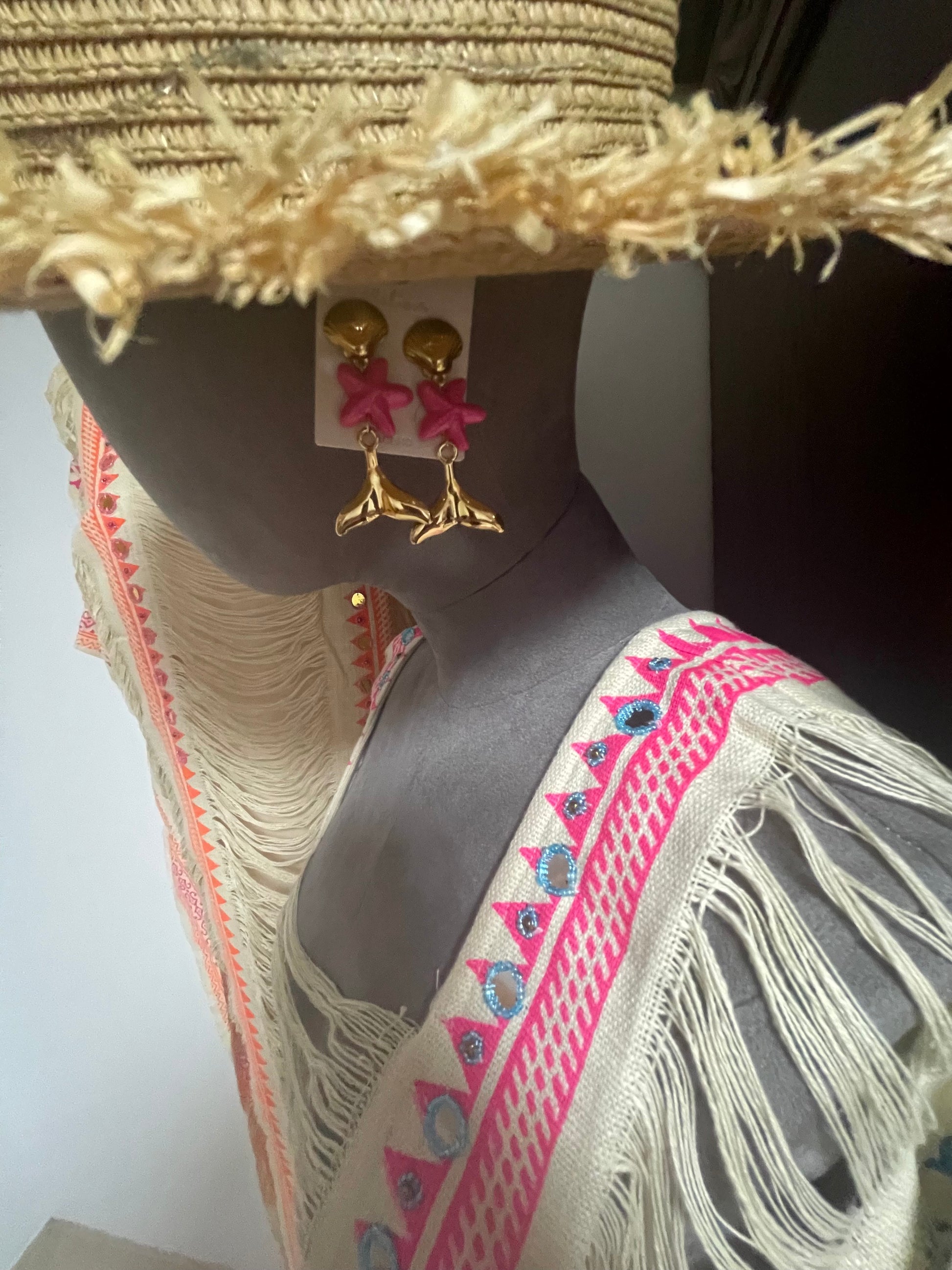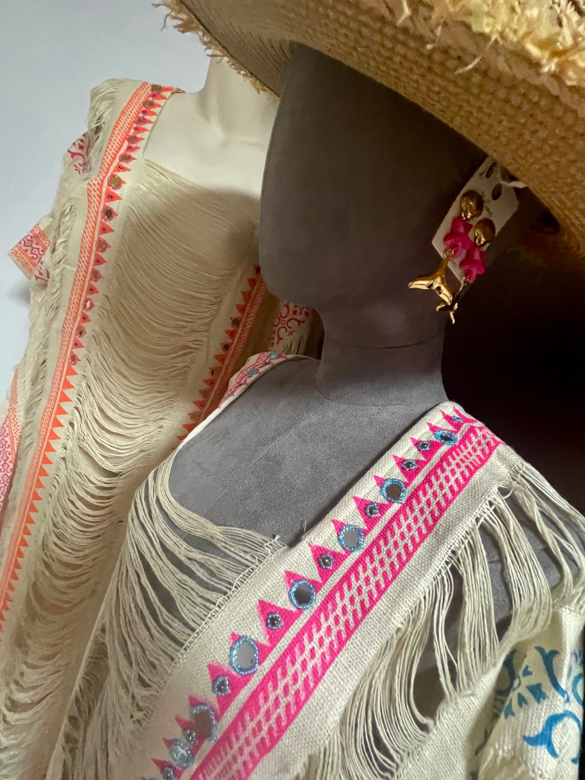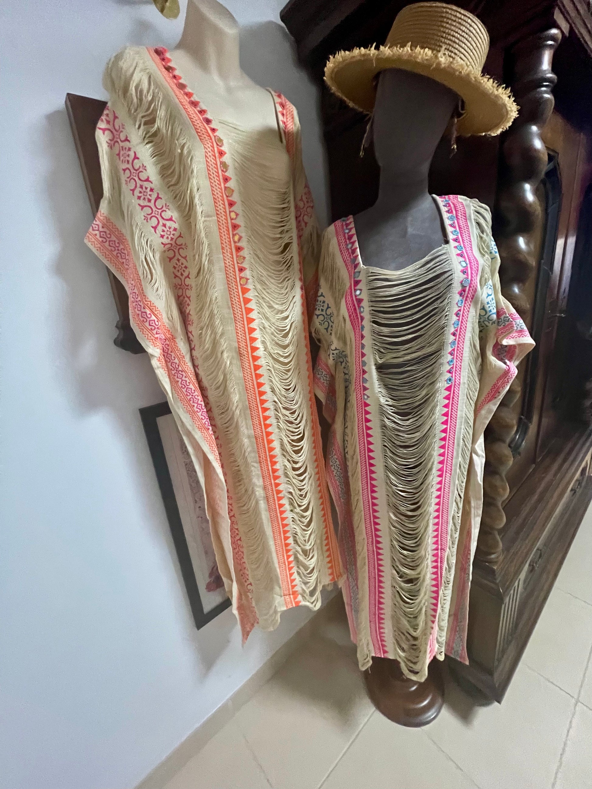 Gorgeous beige base with either pink and turquoise or orange and pink, mirror and bead detail fits 12-18