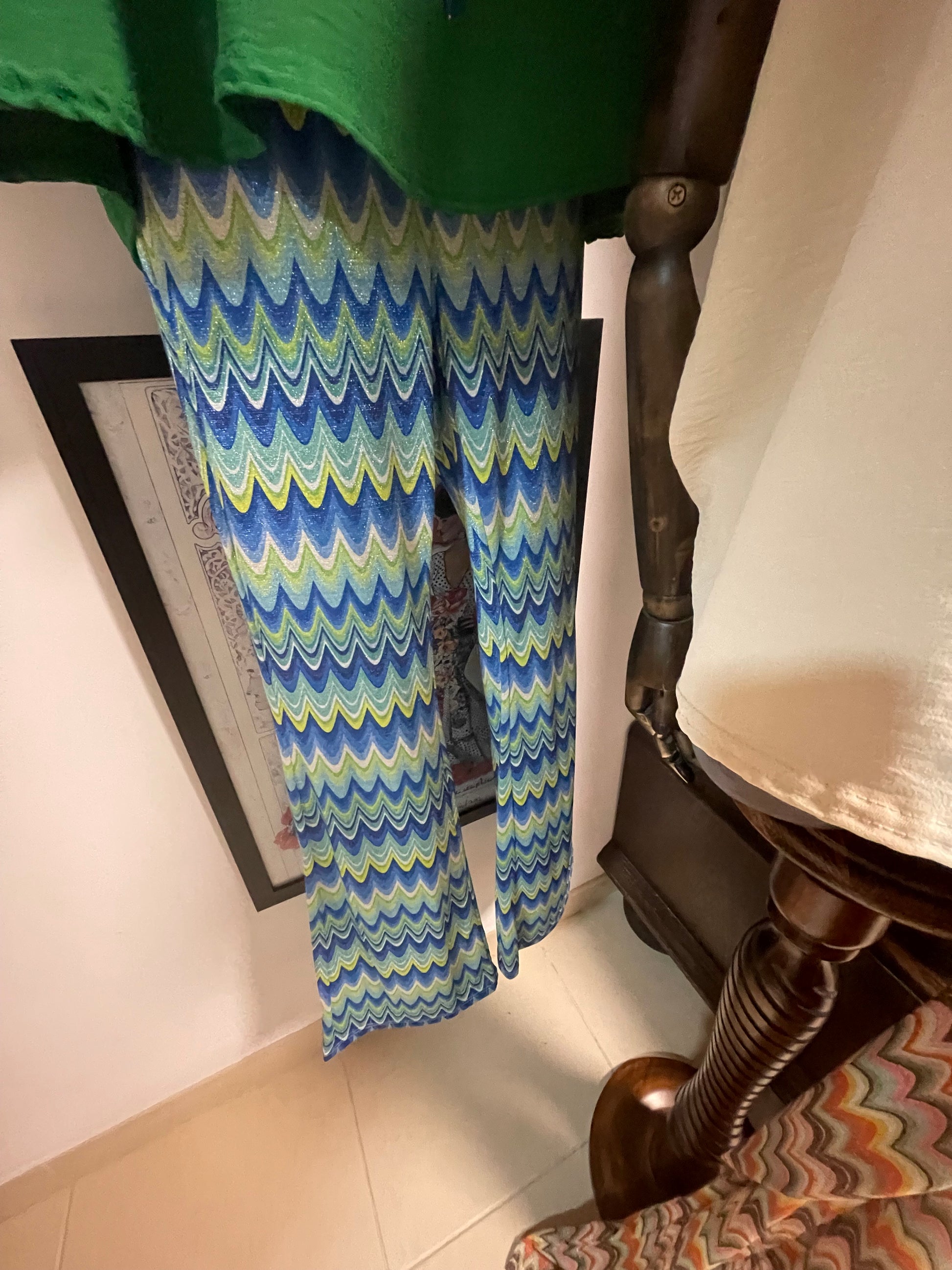 Long length elasticated waist boot cut pants available in Blues or the Oranges fit uk10-12
