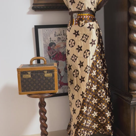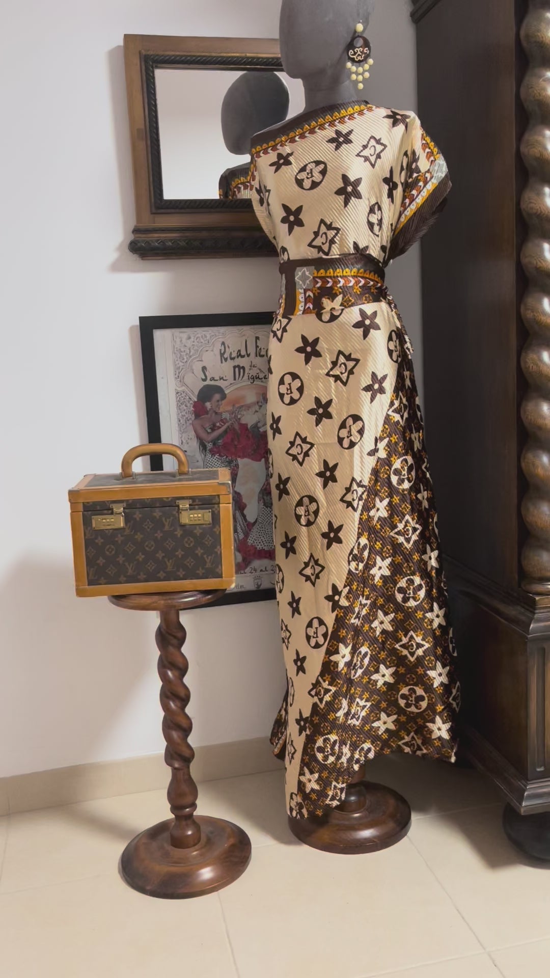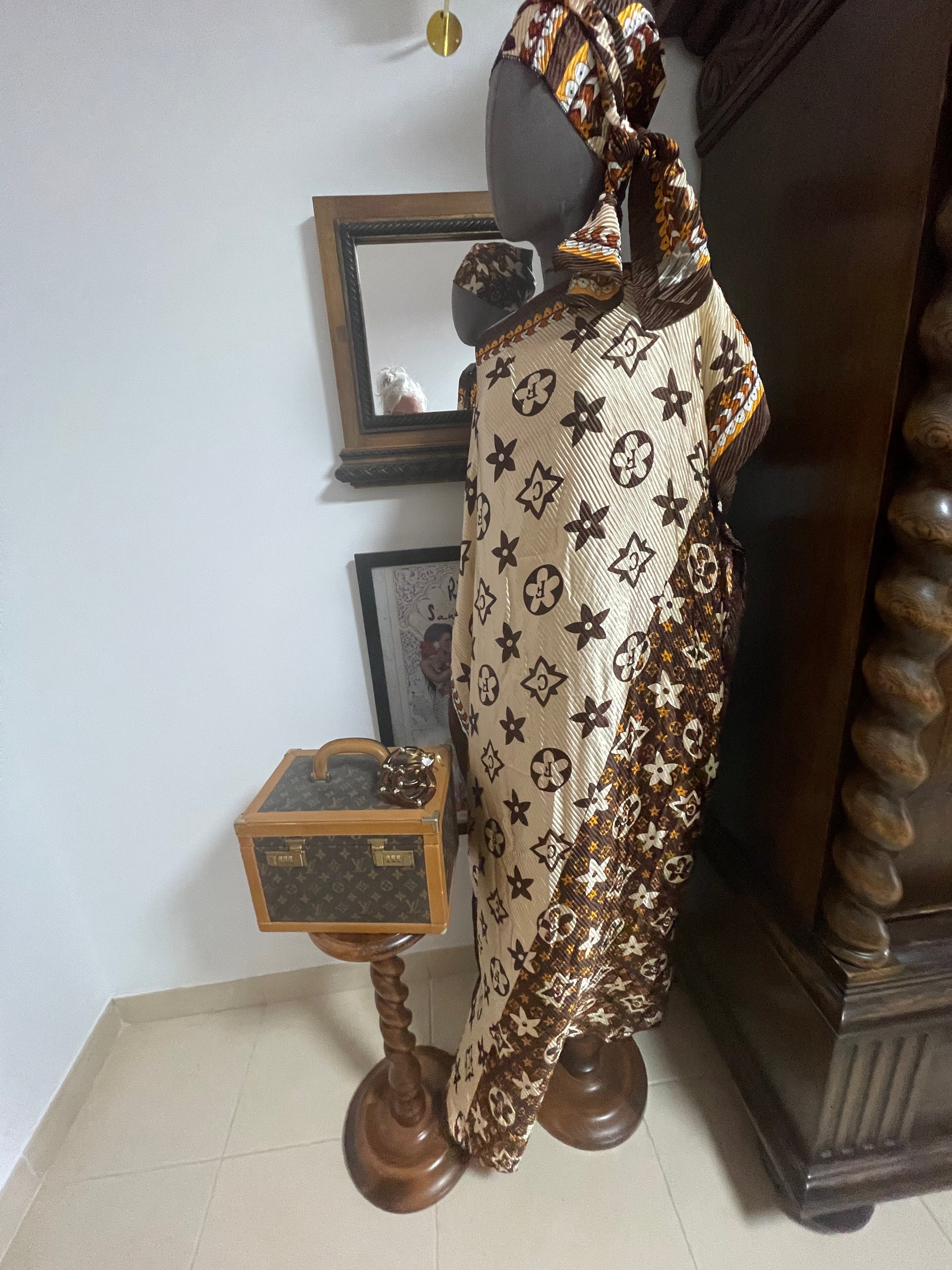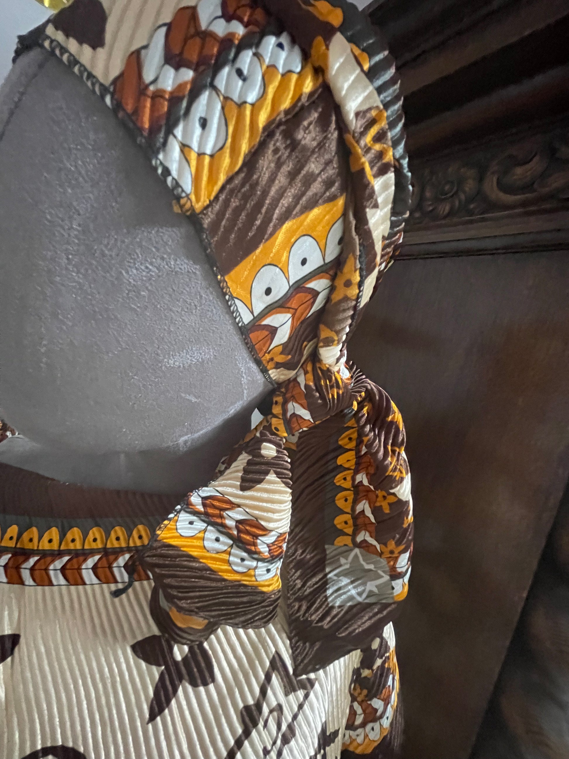 Gorgeous light weight beautiful colours long kaftan with matching scarf to be worn at neck on your head attached to your handbag or used as a belt …… fits size 12-20