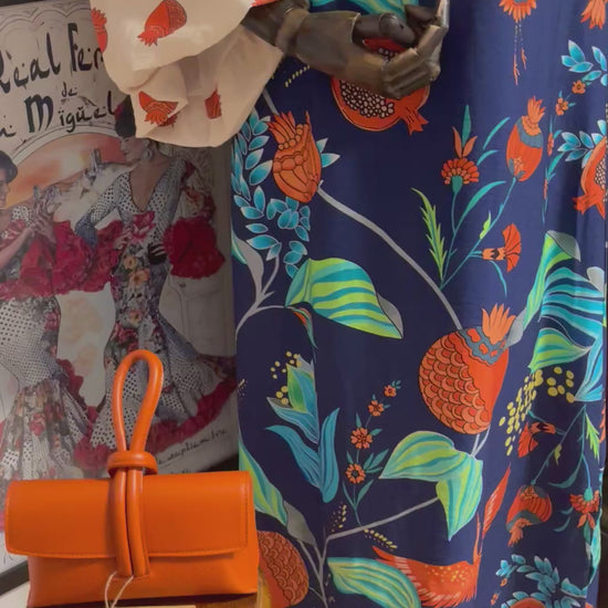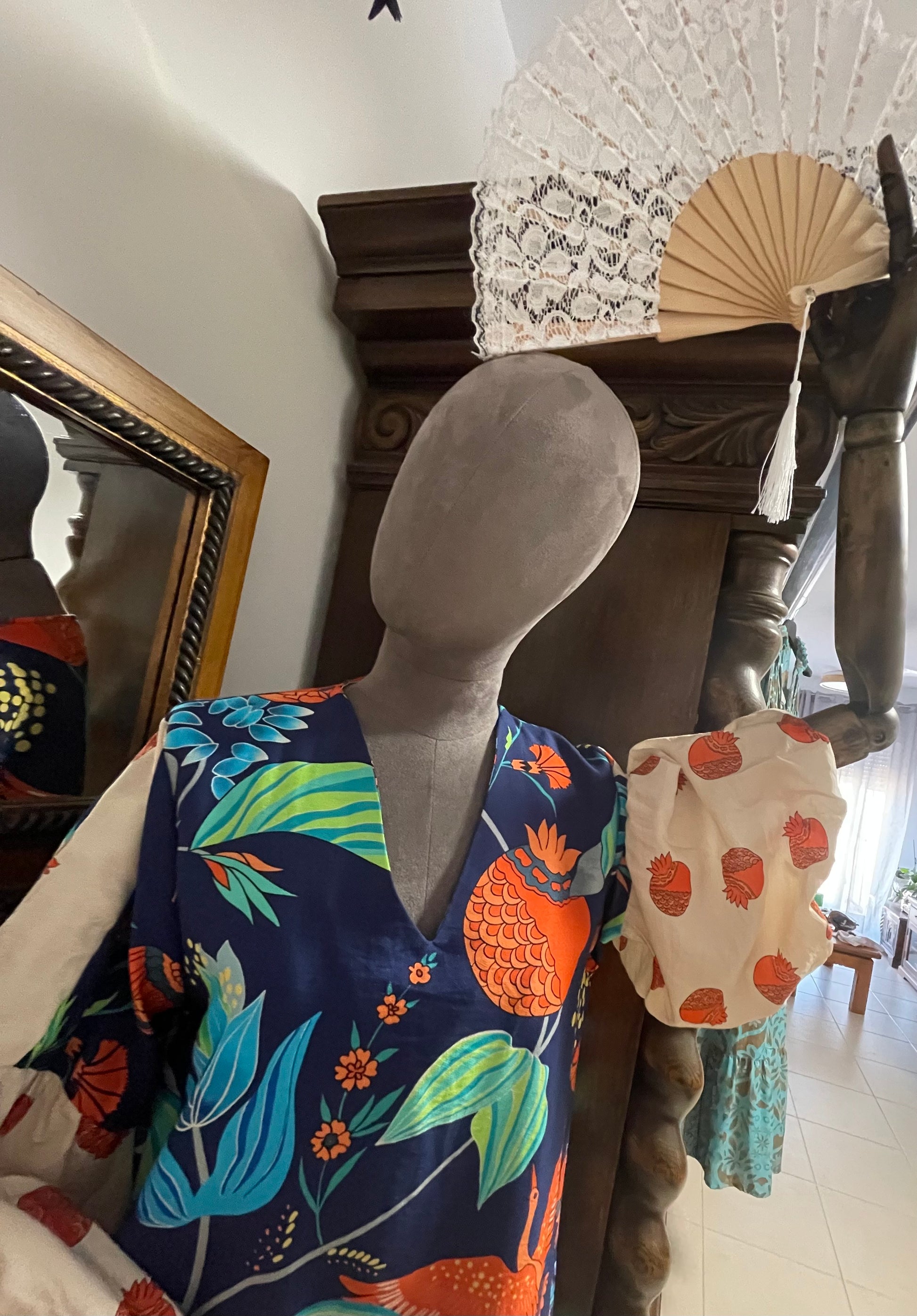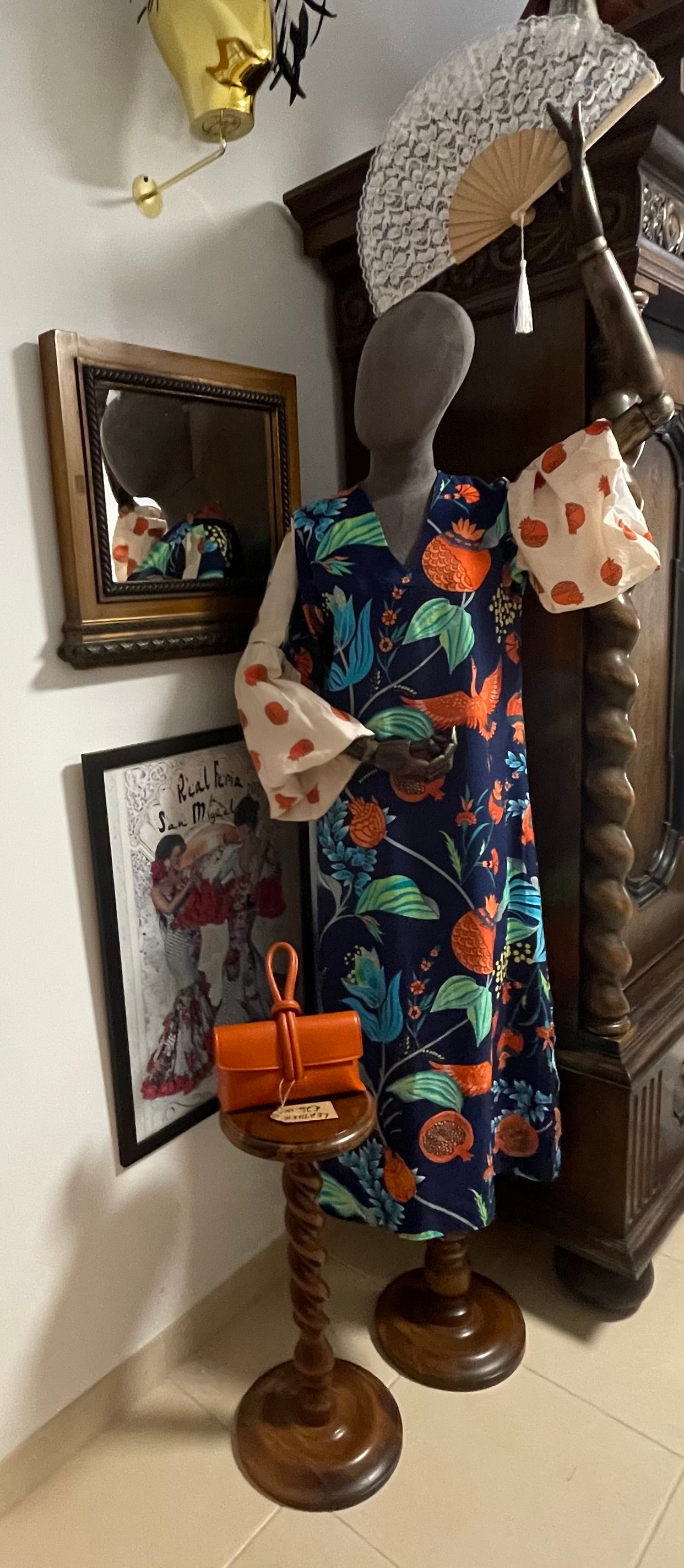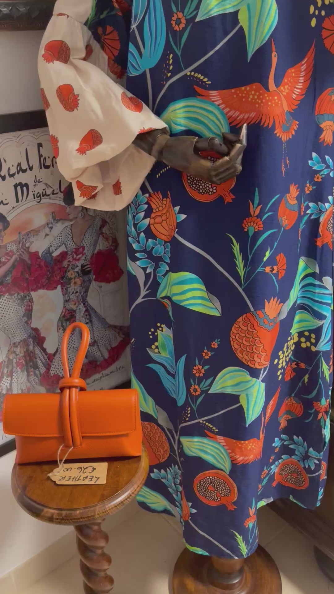 Long puff sleeve dress with two side slits and end….. beautiful detail and colours fits (10-14)