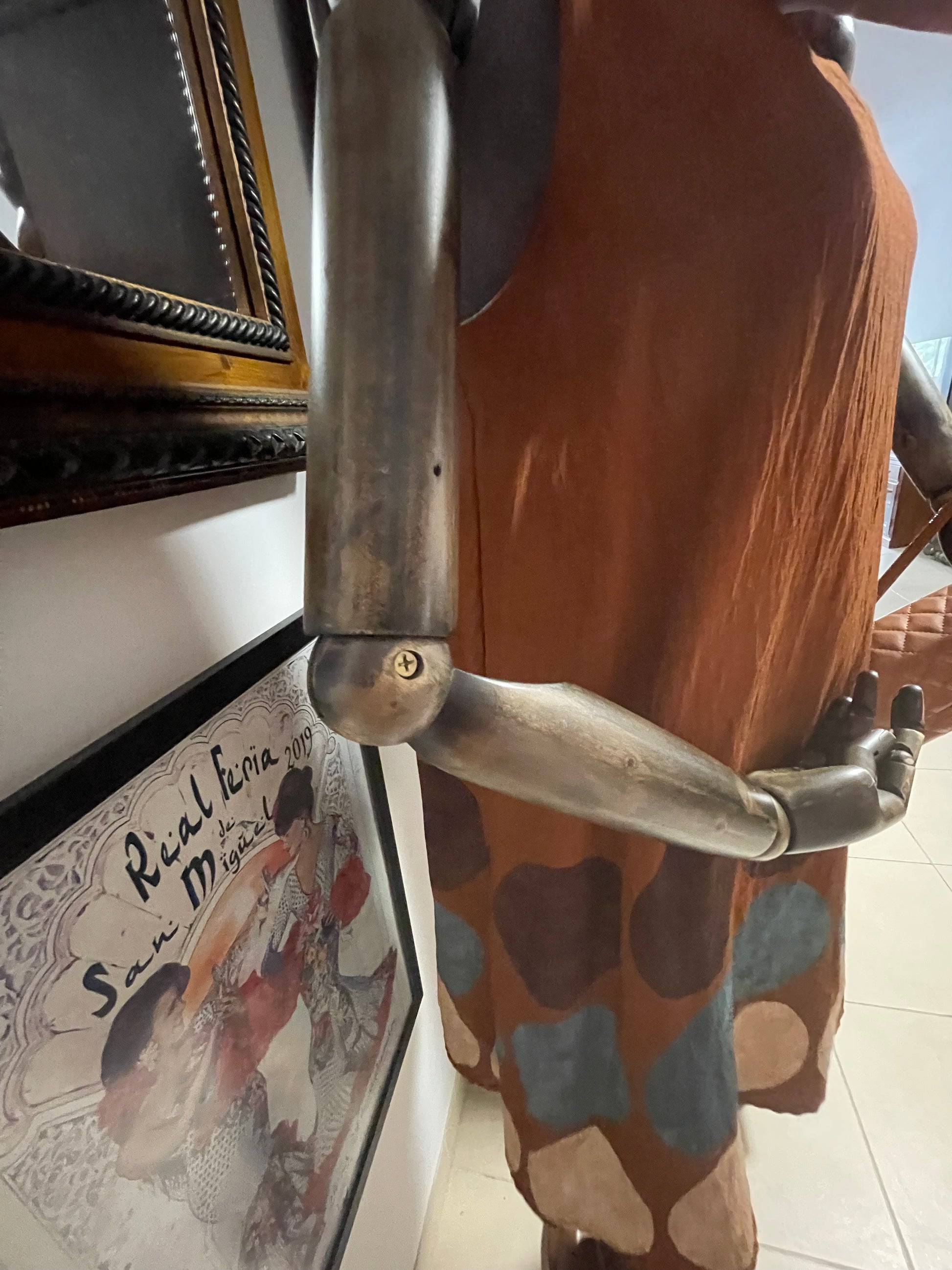 Presenting this beautiful toffee brown dress with chocolate brown/teal blue and warm white circular design……. This is strictly a size 10-12….. light and easy to wear, €26.00. We have it styled with the toffee box quilted bag with sparkly handle ( and long strap ) €27.00 and our ‘jellyfish’ gold earrings at €5.00
