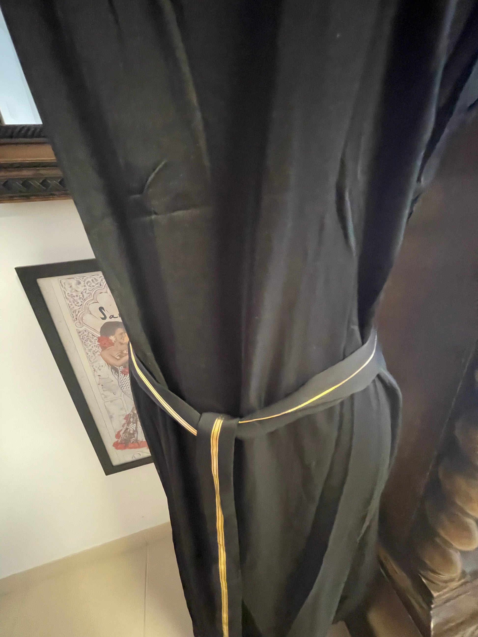 Incredible two piece sheath dress with optional belt and long volumous kimono with ornate detail and tassels … the kimono is also lined