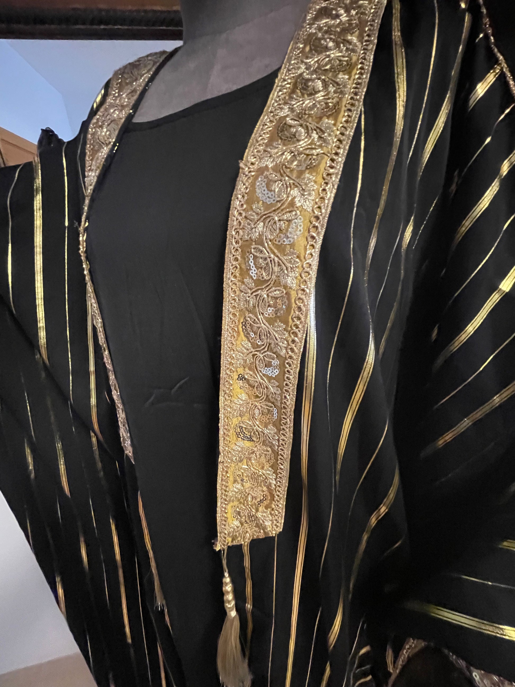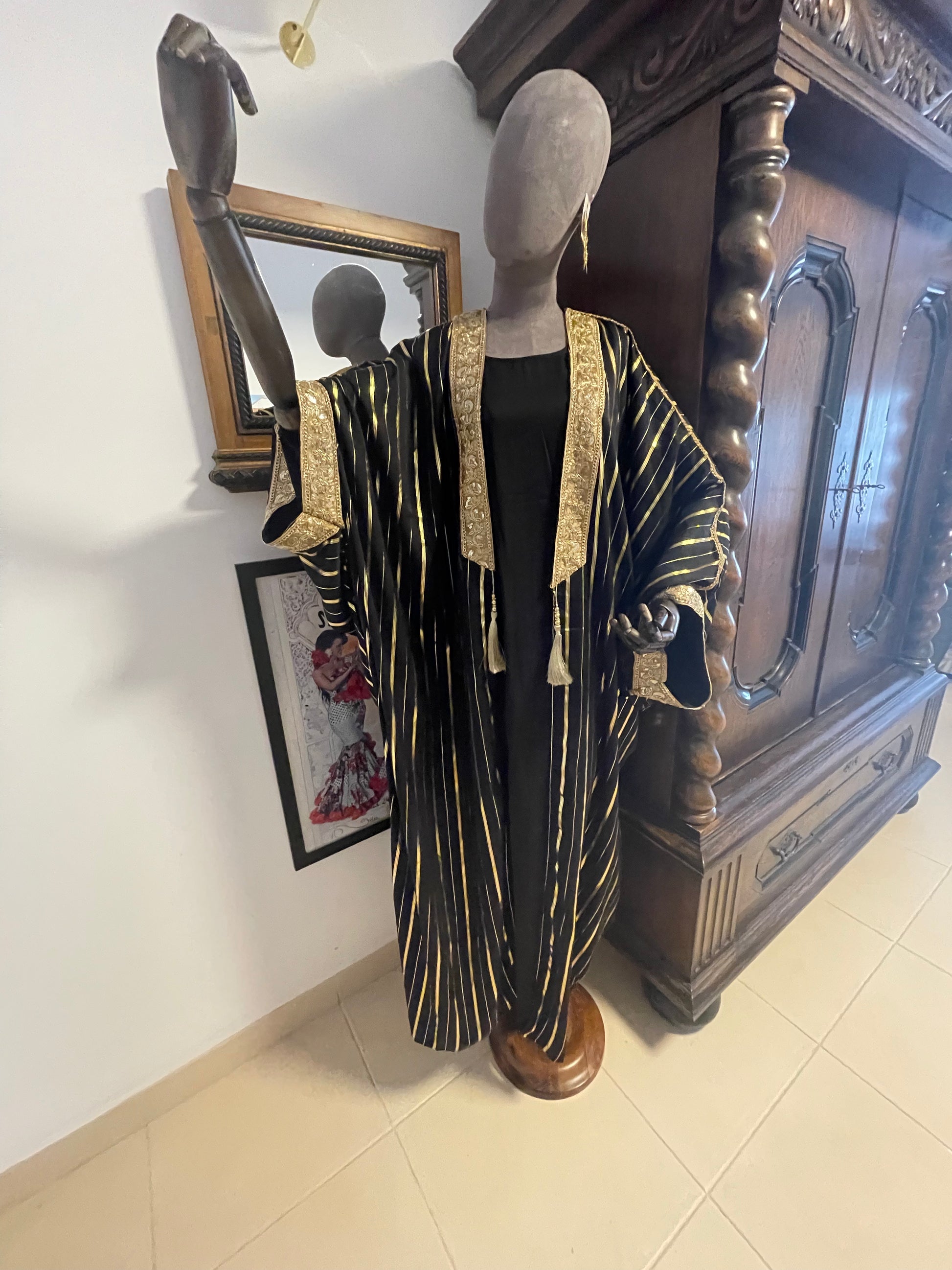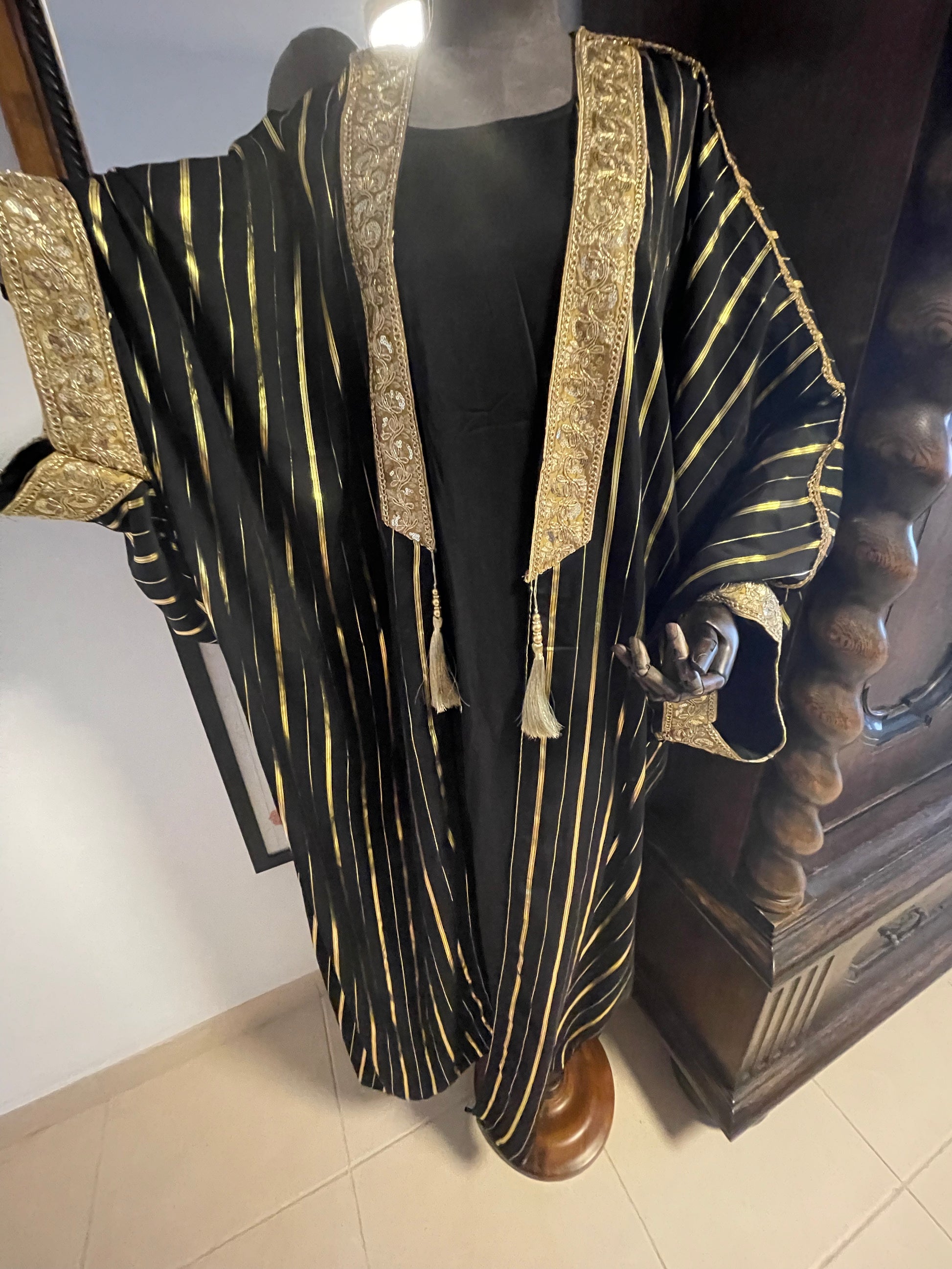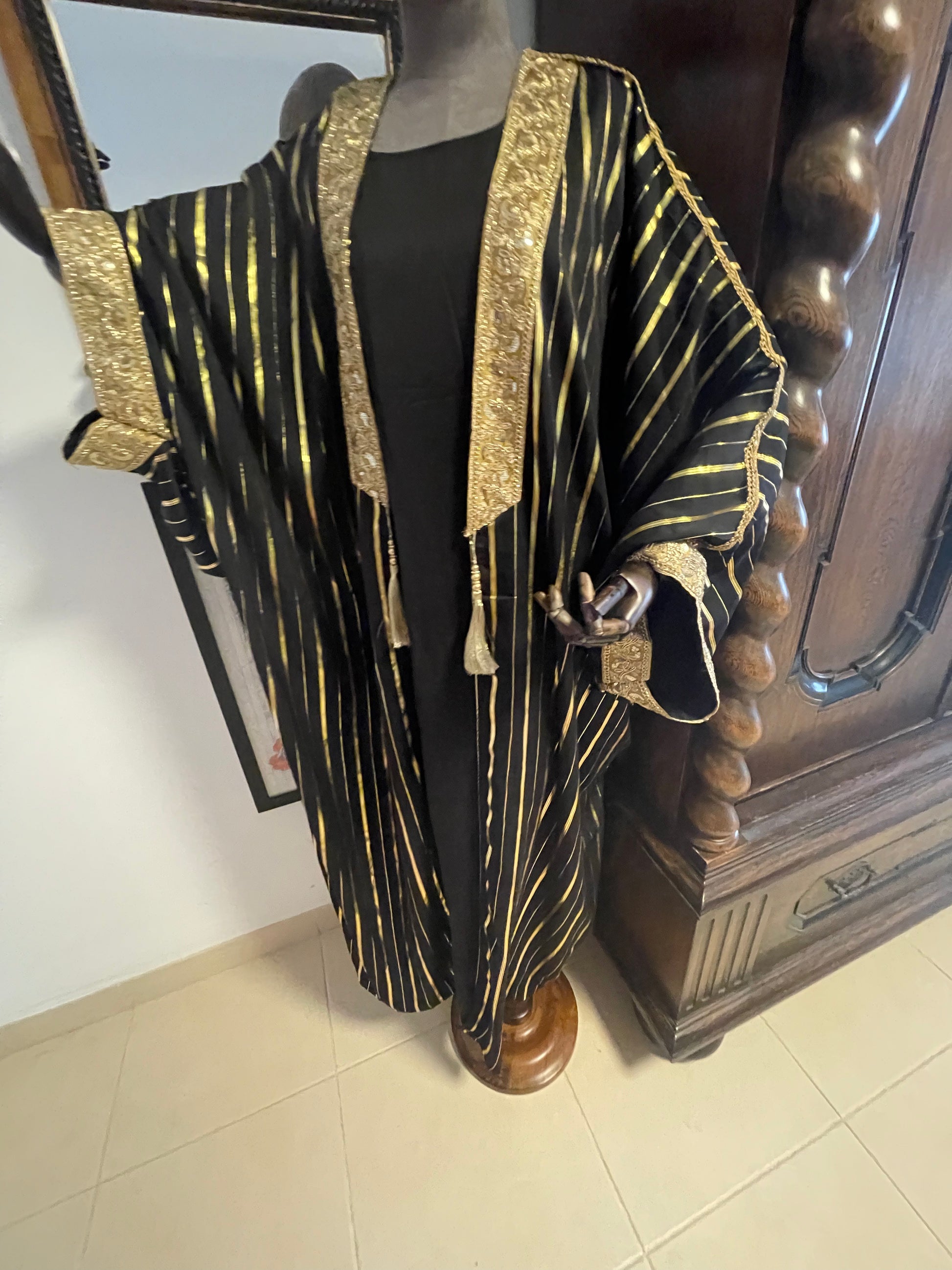 Gold and black dress with ornate kimono