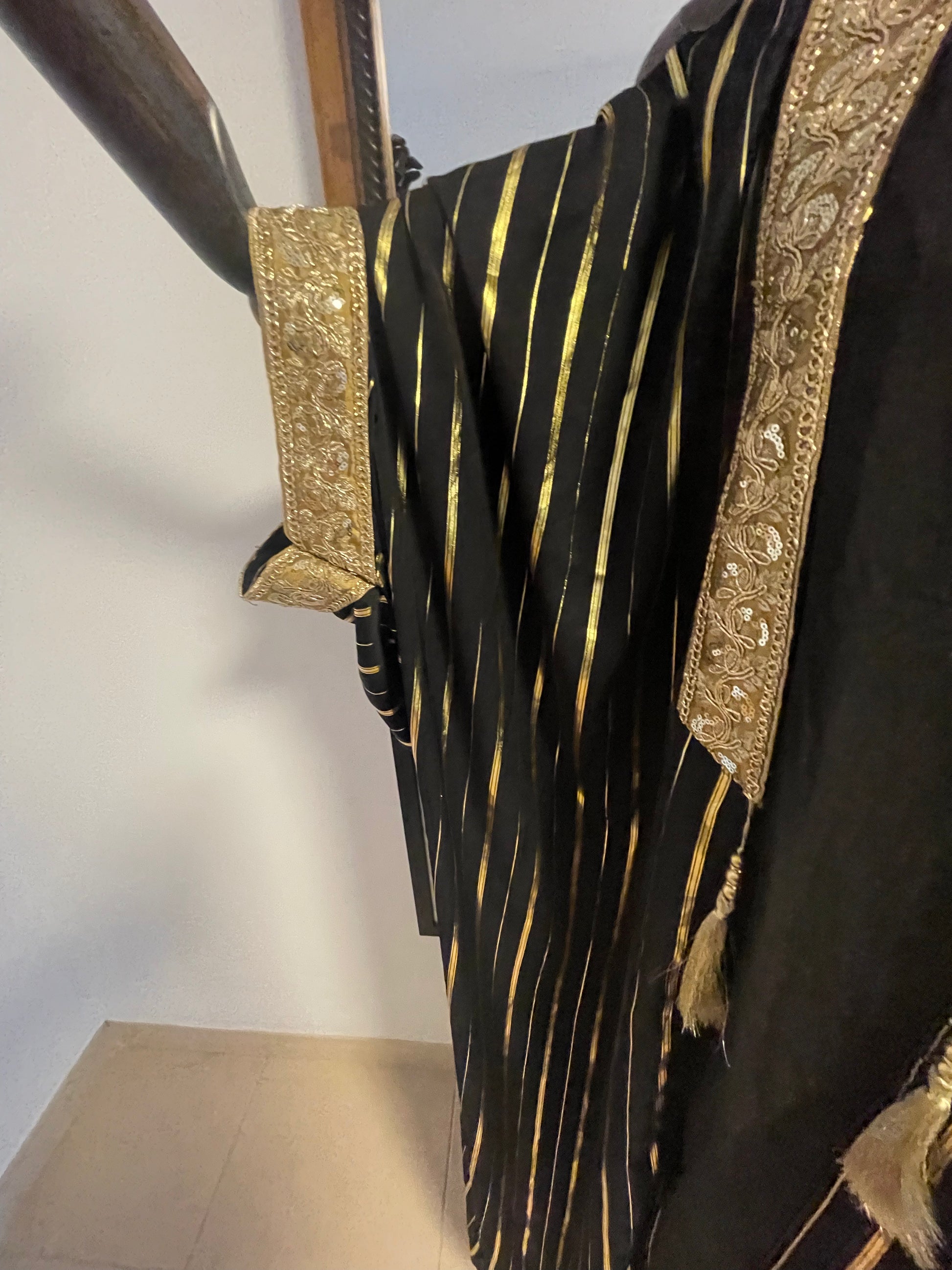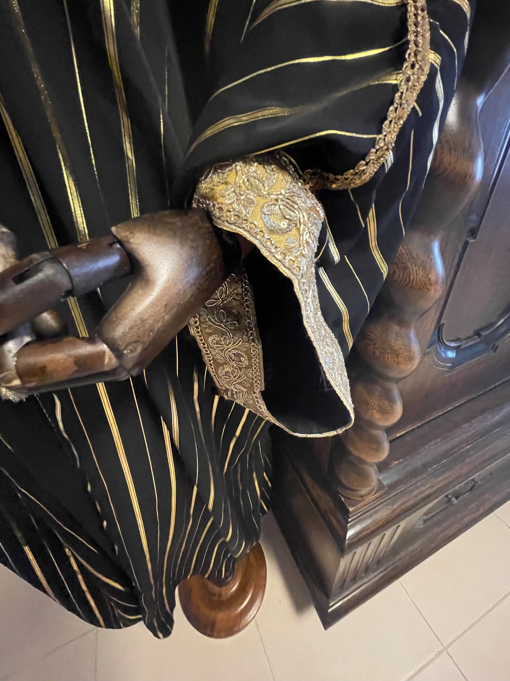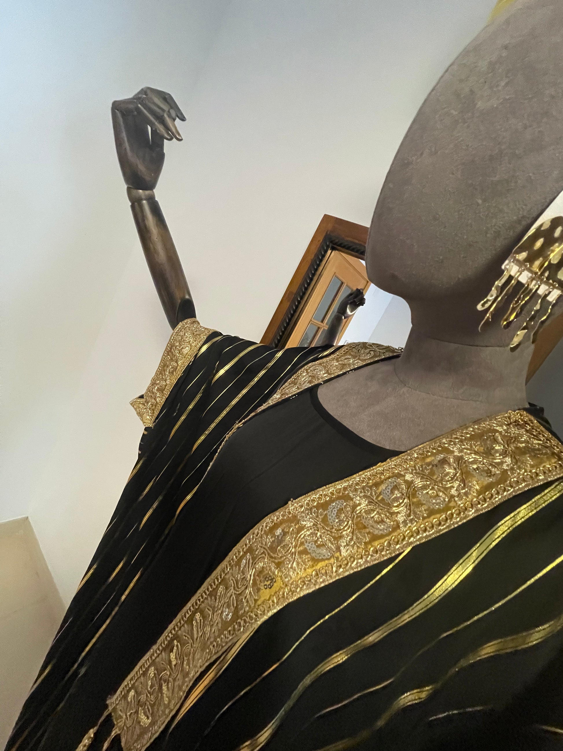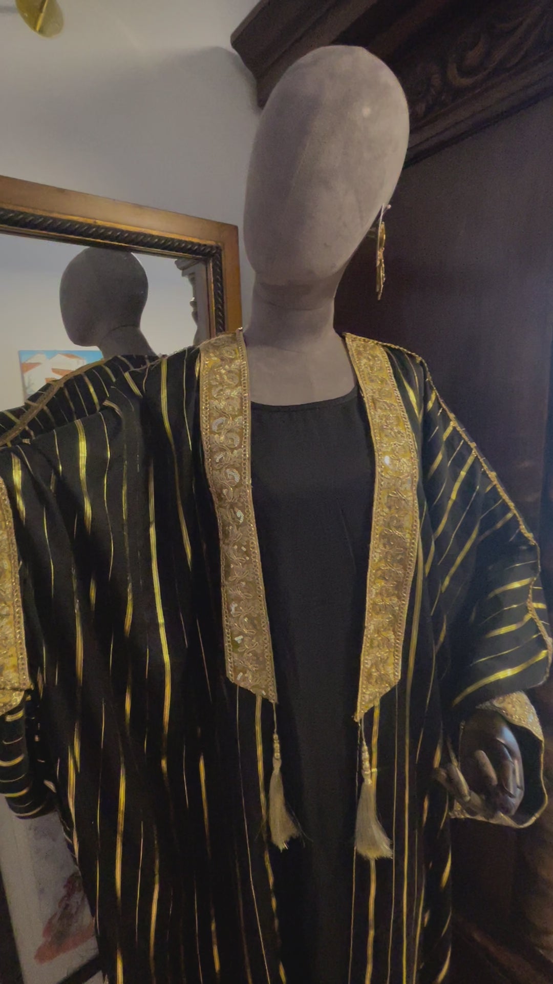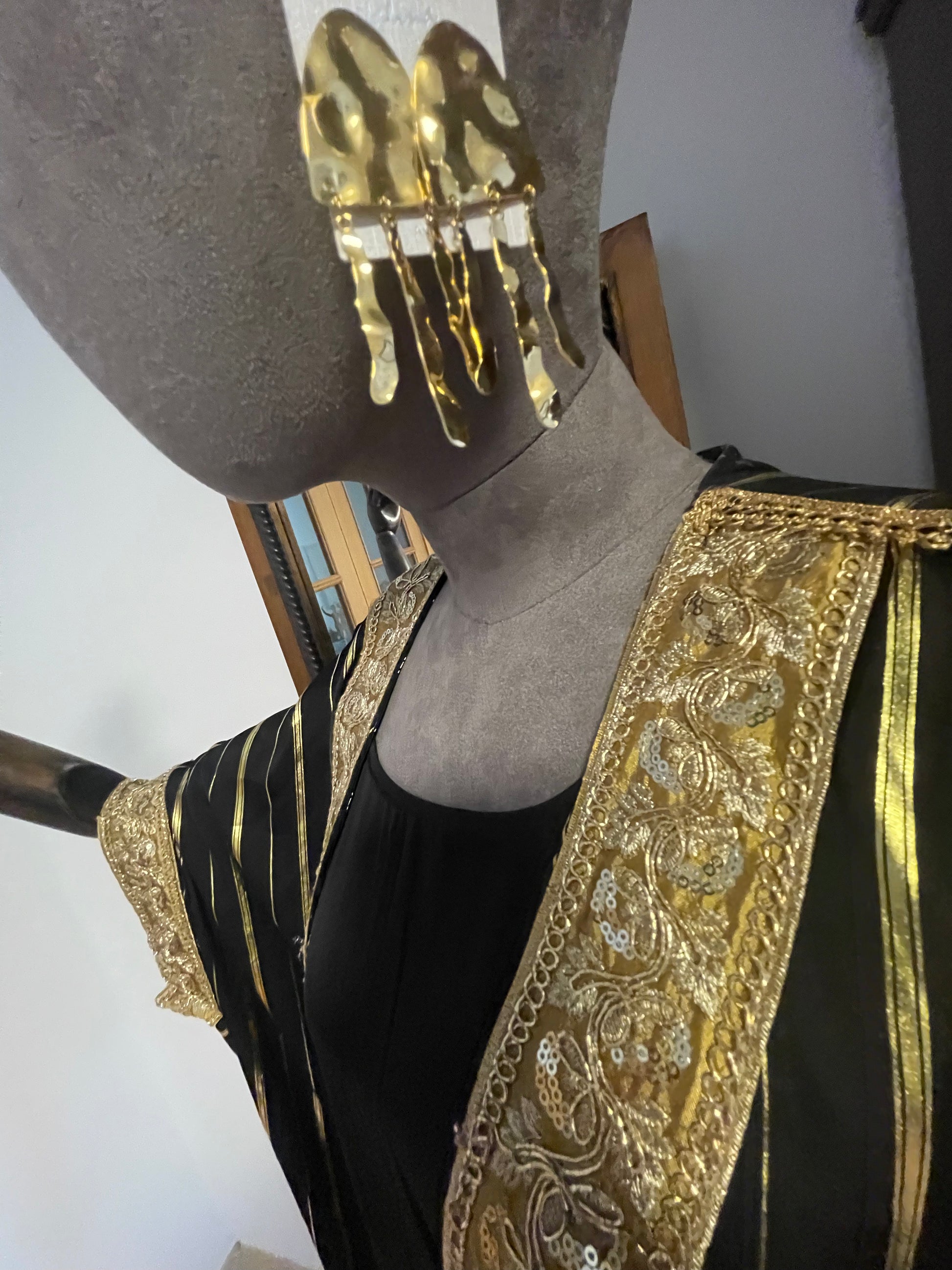 Gold and black dress with ornate kimono
