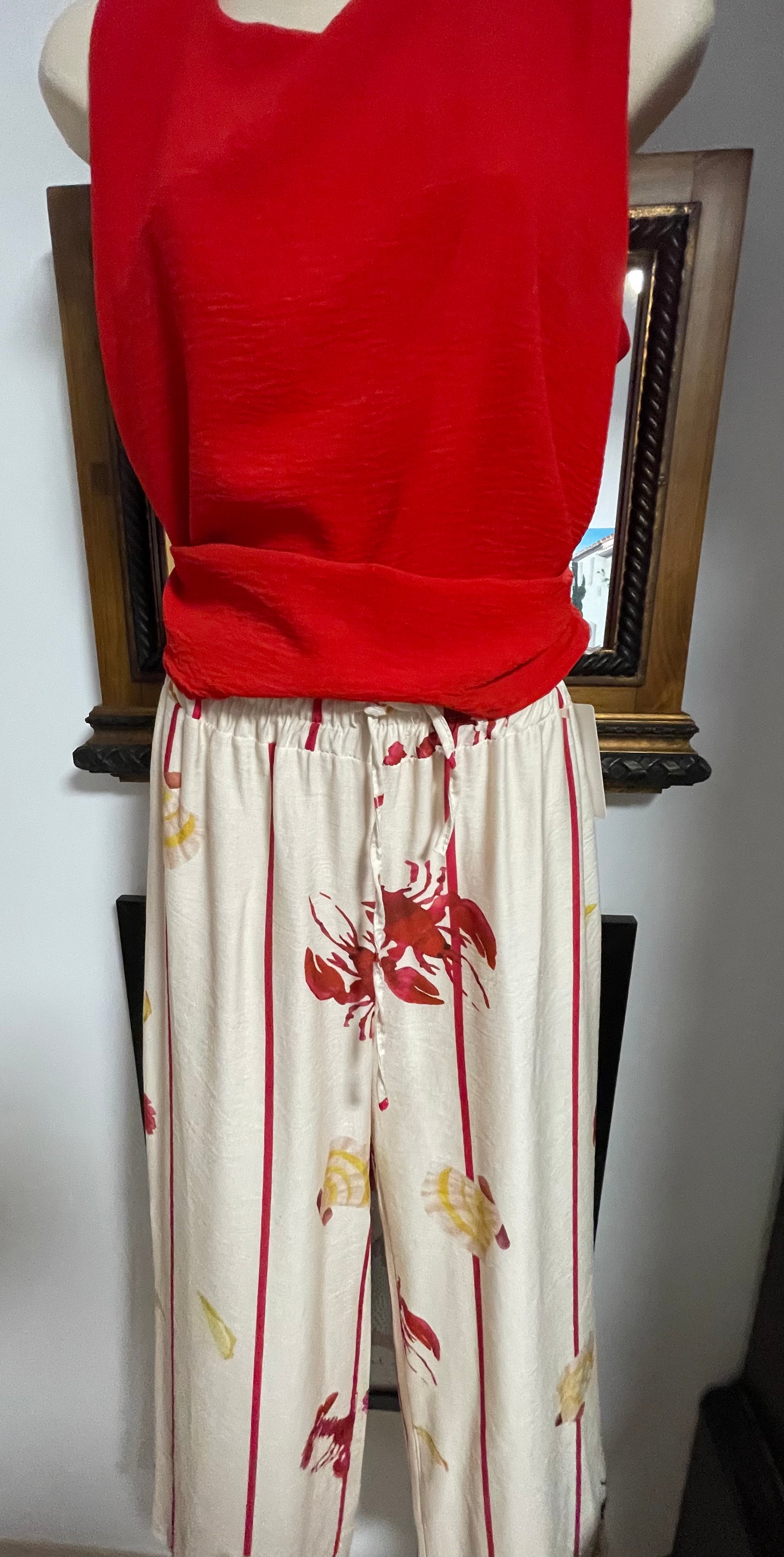 Lobster and clam wide leg pants with elasticated waist fits 12-14